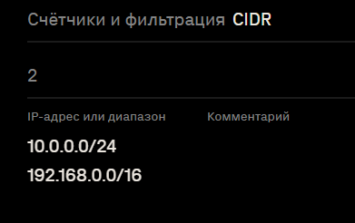 CIDR — это IP-адрес или префикс, для которых FlowCollector выполняет анализ входящего трафика в соответствии с правилами в Объекте.