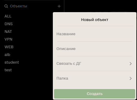 Папка - для удобства объекты можно сгруппировать в папку, выбрав существующую или создав новую через опцию "Создать папку".