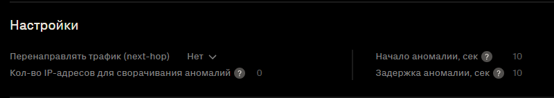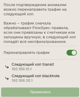 Опция задаёт, куда перенаправлять трафик при подтверждённой аномалии.