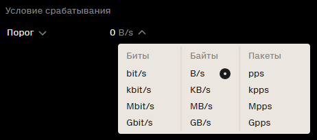 Условия срабатывания определяют критерий, по которому трафик признаётся аномальным.